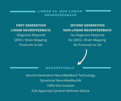 Another significant advancement with non-linear neurofeedback is that it does not require the trainer to set protocols. Because the speed of computing has approached brain speed, the dynamical software interacts with the brain in real-time to give it feedback so that the individual’s brain can register its own state changes and shift anything that is not optimal.